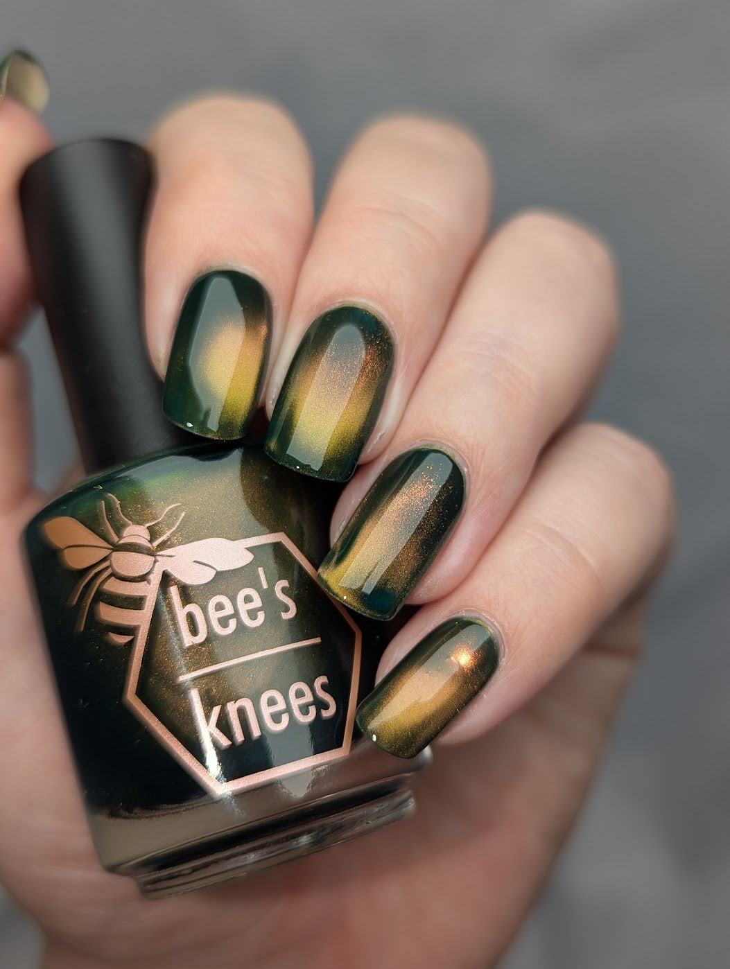 a turquoise polish with fine copper magnetic shimmer.