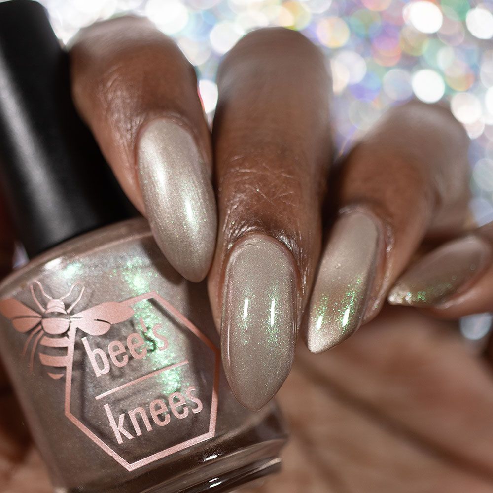 a weathered bone with antique gold magnetic shimmer and green shimmer.