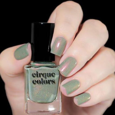 Succulent Garden is a khaki green nail polish with fiery red shimmer and delicate holographic sparkle.